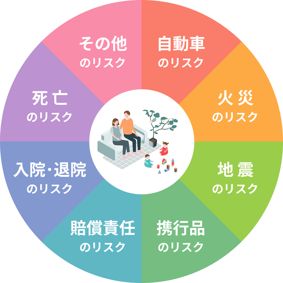 損害保険・生命保険・がん医療保険などの多彩な保険商品から資産運用相談まで、個人のお客さまの生活をサポートする各種サービスを幅広く取り揃えています。